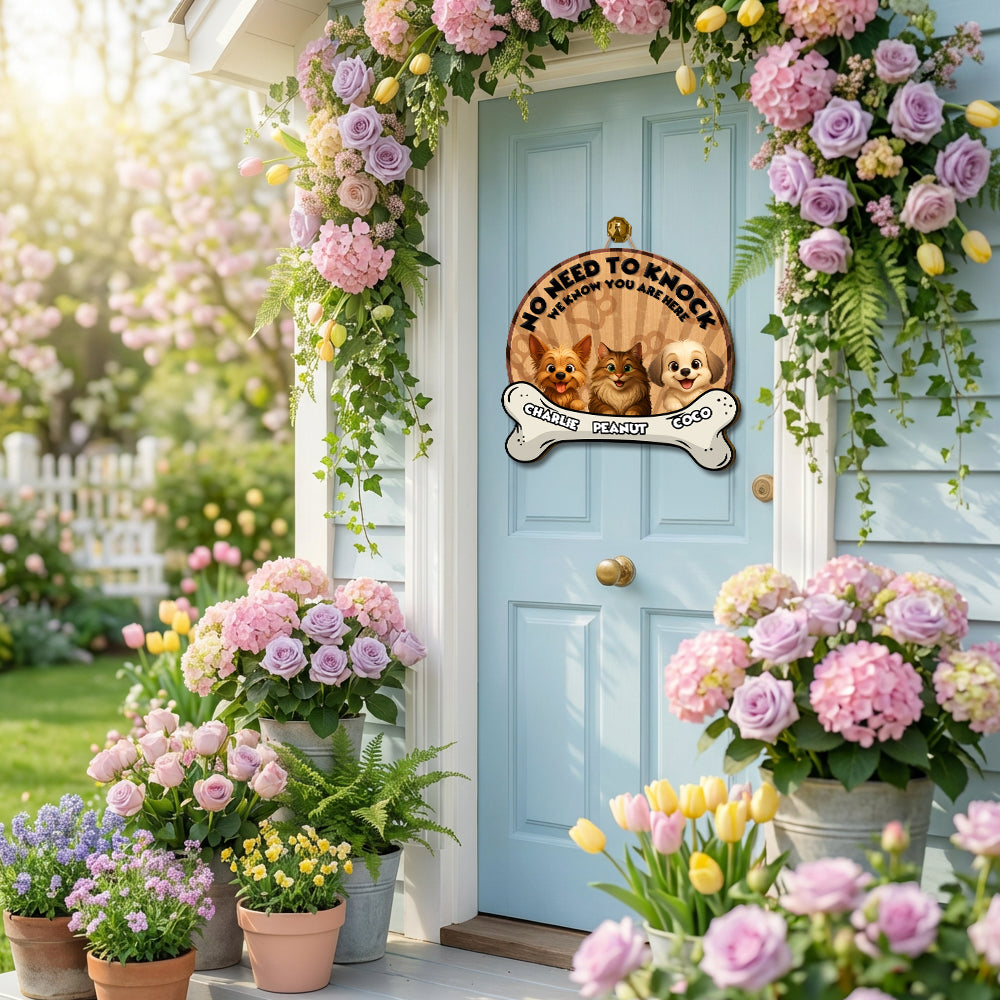 • Personalized Bone Shaped Door Sign - No Need To Knock - Up to 6 Cats and/or Dogs