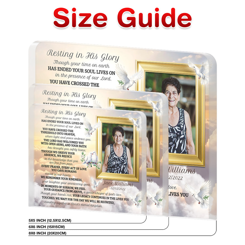 • Personalized Memorial Plaque with Photo – Golden Clouds & Doves, “Resting in His Glory” Christian Sympathy Gift