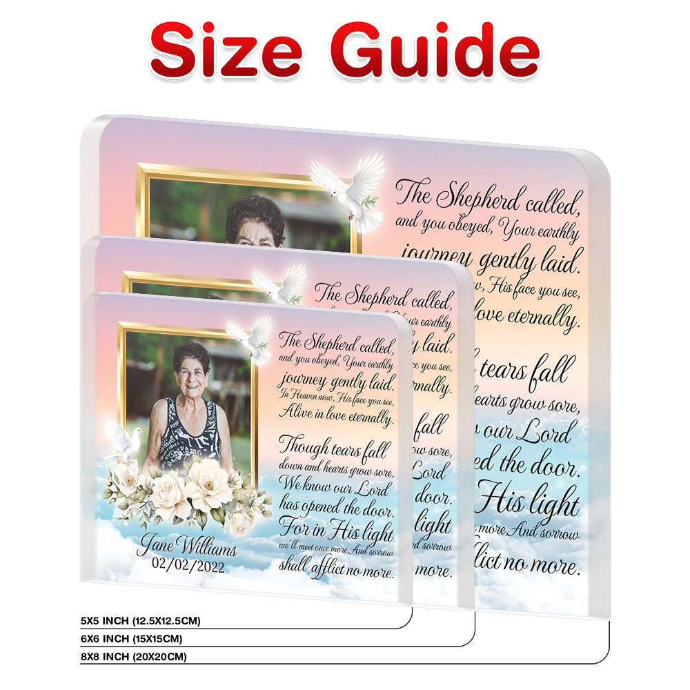 • Personalized Memorial Plaque with Photo – White Roses & Doves, “The Shepherd Called” Sympathy Gift