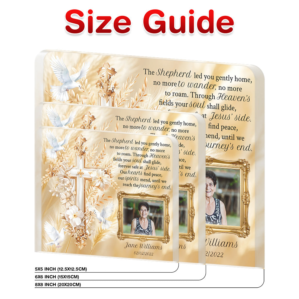 • Personalized Memorial Plaque with Photo – Golden Cross & Doves, “Journey’s End” Christian Sympathy Gift