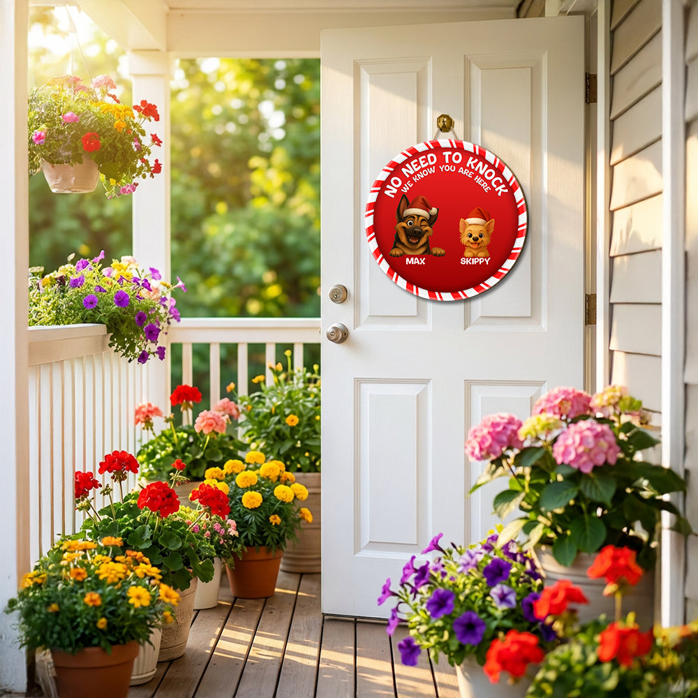 • Personalized Christmas Pet Door Sign – “No Need to Knock, We Know You Are Here” – Cat or Dog Wooden Sign - Upload Photo