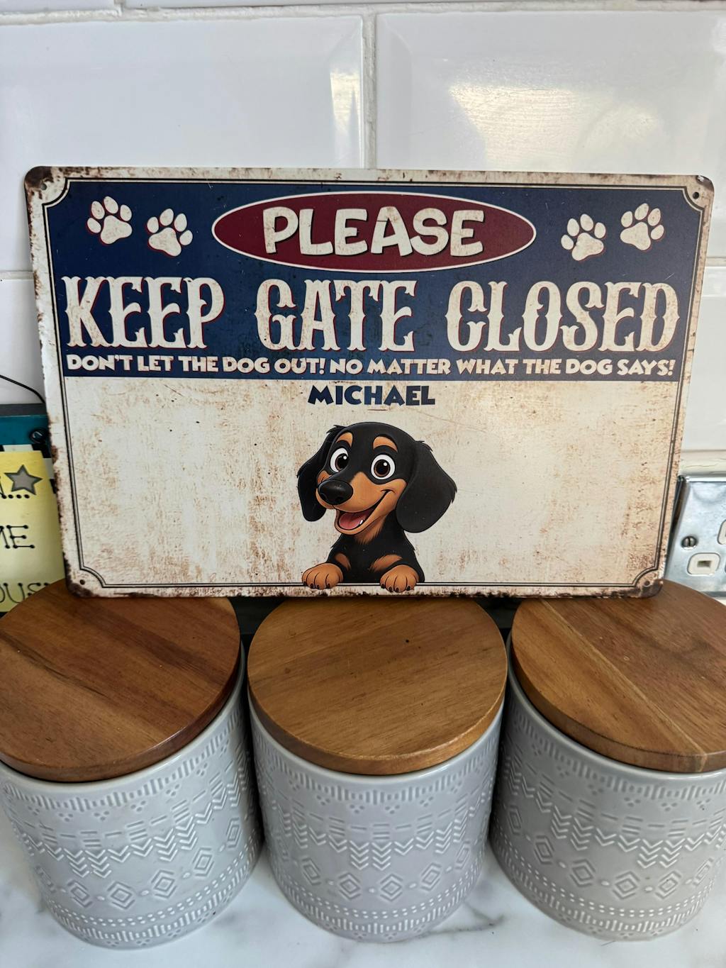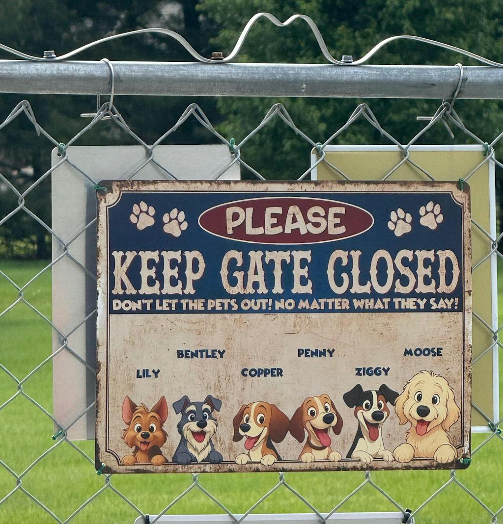 A friend showed me her metal sign with her 2 dogs on it and I couldn't resist having a sign made for our 5 dogs which we hung on our gate. Absolutely love it!! <3