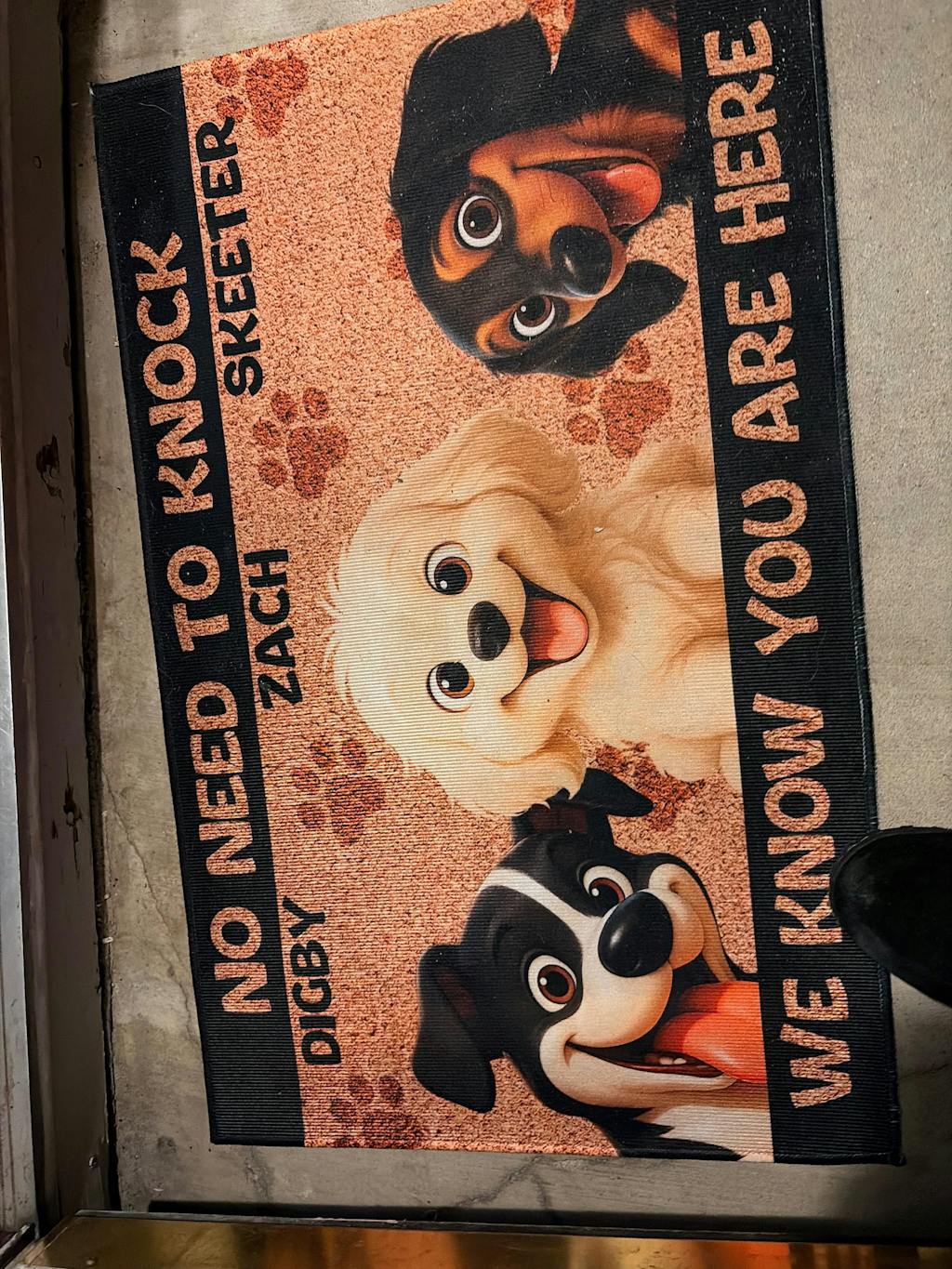 I absolutely love my No Need To Knock doormat. The photo of my cat transferred beautifully onto the mat. t is so nice that I ended up mounting it on the front door rather than placing it outside to get weather worn and have people wiping their shoes on it.