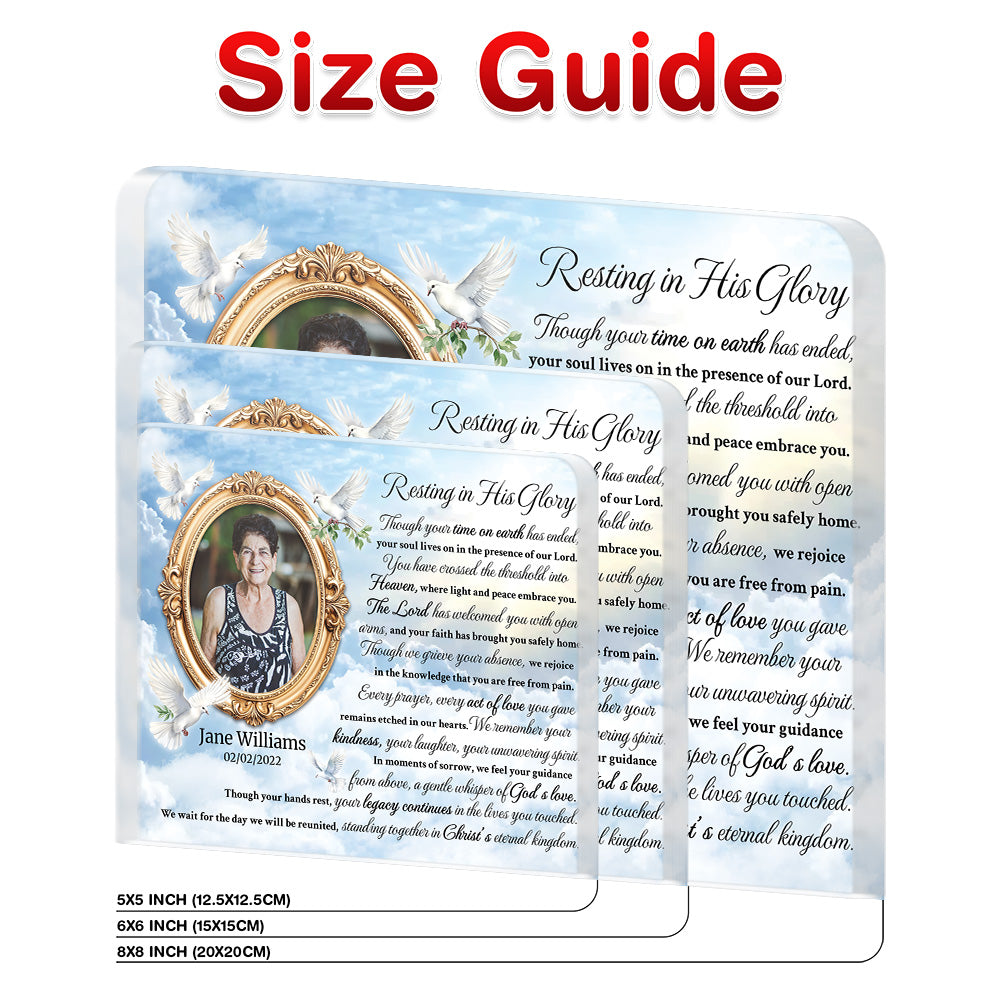 • Personalized Memorial Plaque with Photo – Doves & Clouds, “Resting in His Glory” Christian Sympathy Gift